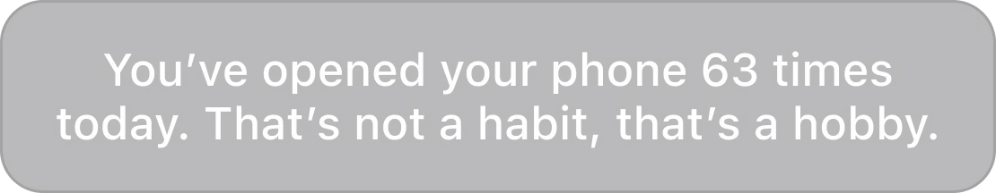 Frogged gives you a clear overview of your day: how many times you picked up your phone, how long it stayed unlocked, and which apps are the worst offenders. No excuses, just raw numbers to see how big of a loser you are.